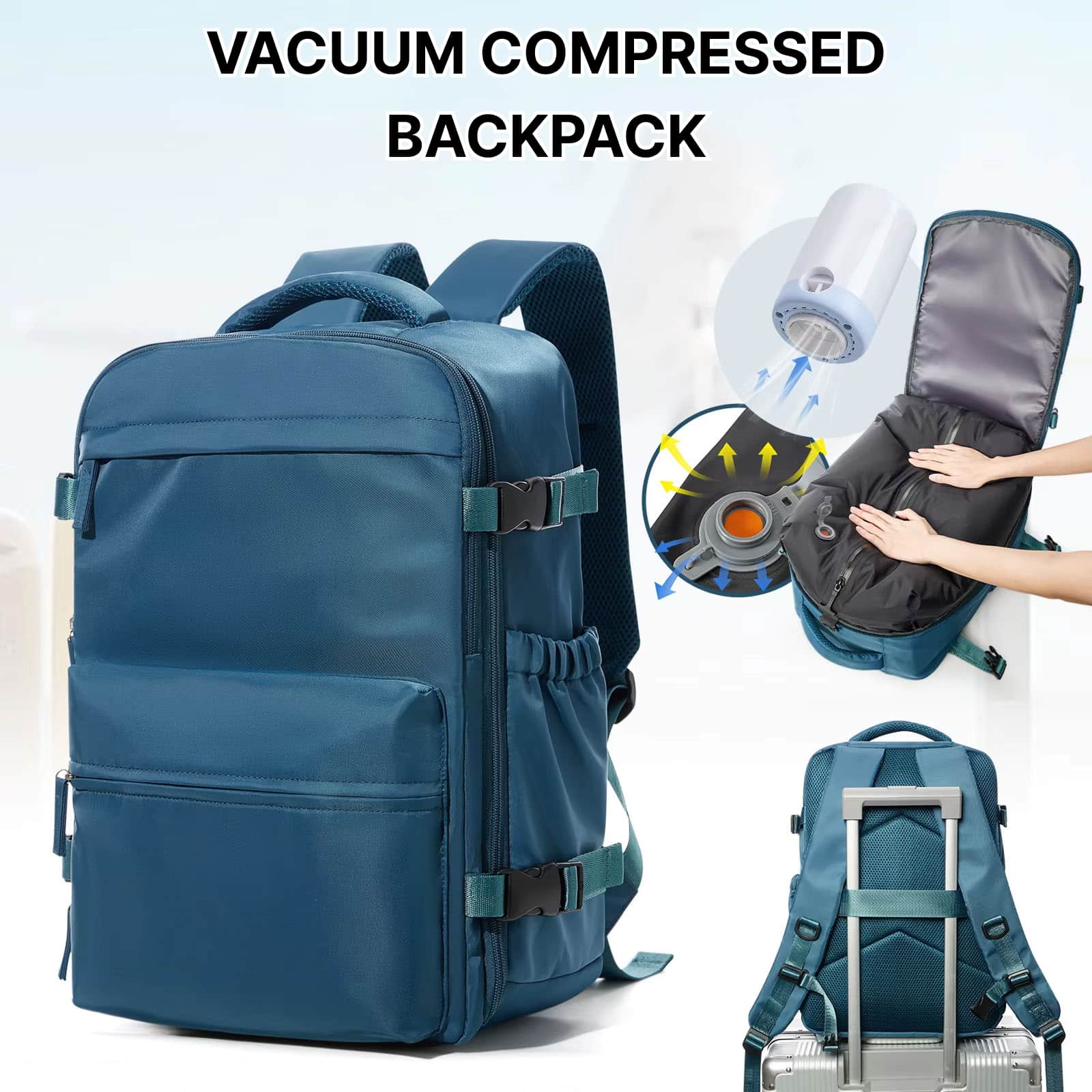 The BackyVaff vacuum compression backpack maximizes your packing capacity while maintaining airline compliance, ensuring comfortable carrying and effortless airport security screening for stress-free travel adventures.