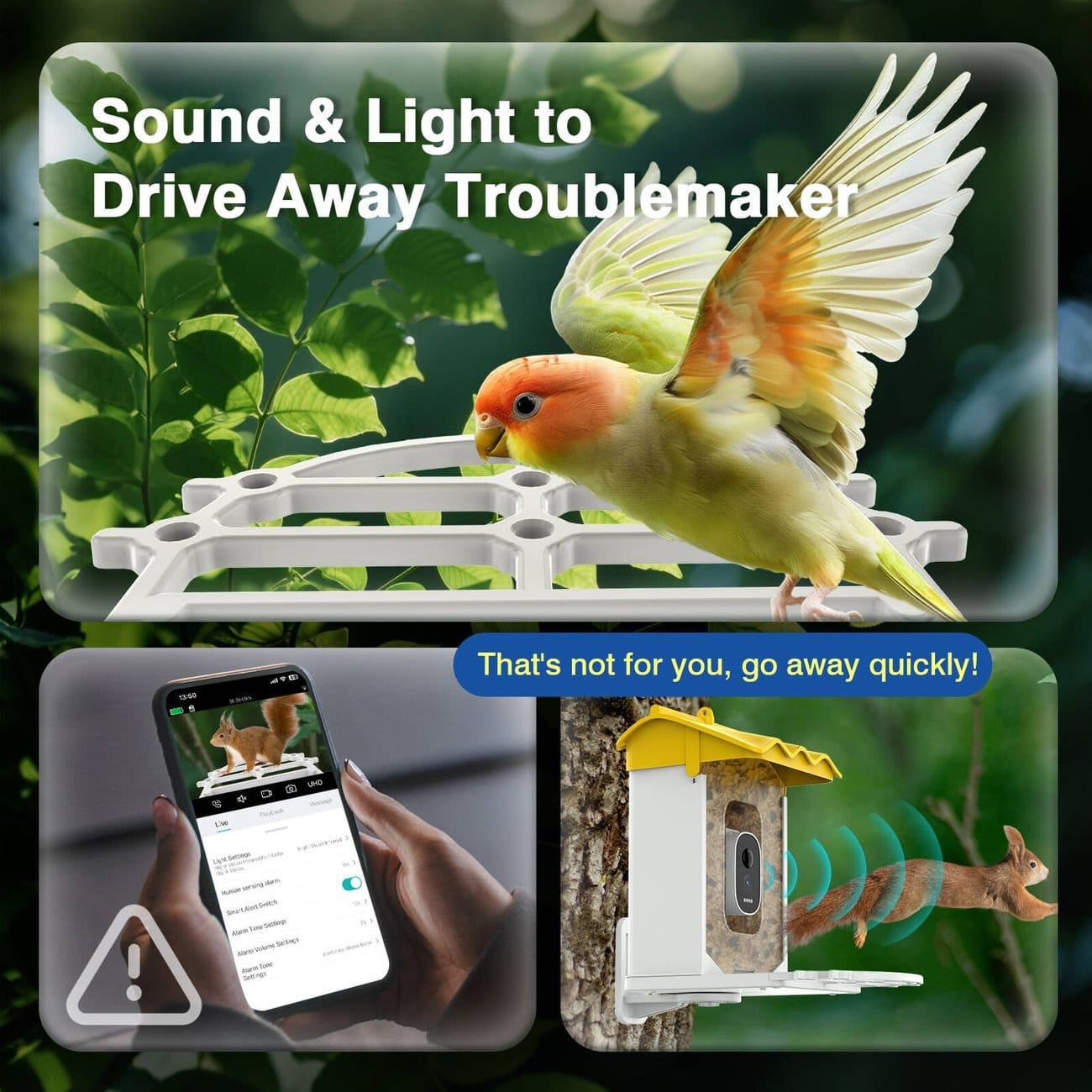 The built-in microphone and speaker enable real-time communication, letting you listen to bird songs and even play recordings to attract specific species to your feeder.