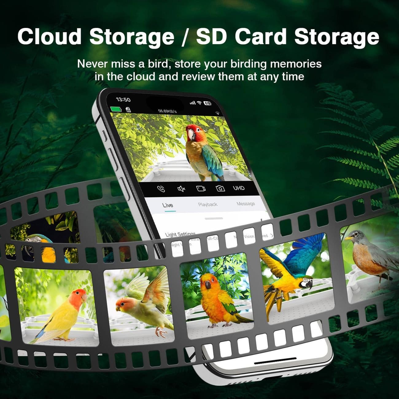 The 400W HD camera includes advanced night vision technology, delivering crystal-clear footage in low-light conditions for excellent nighttime bird observation and recording.