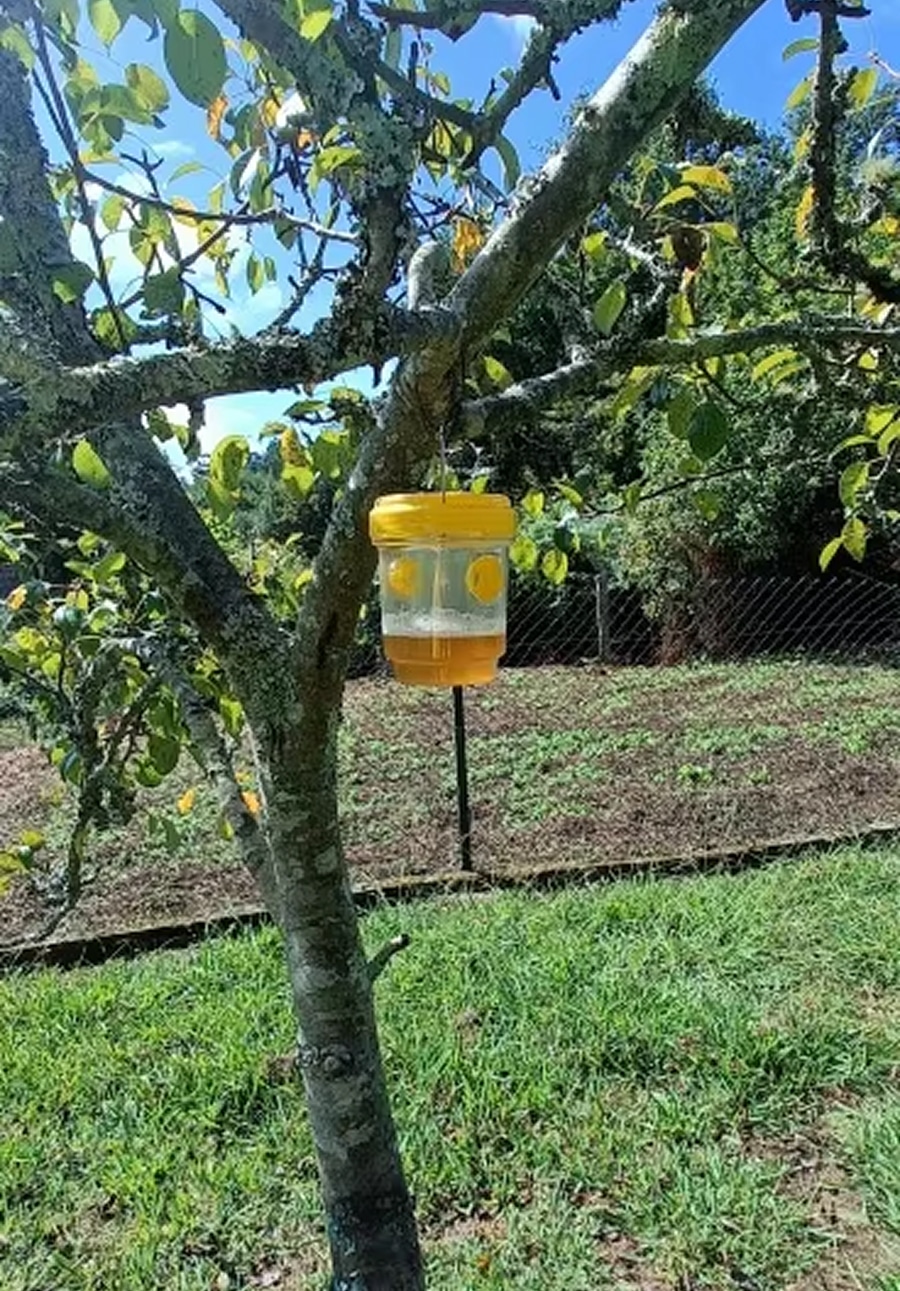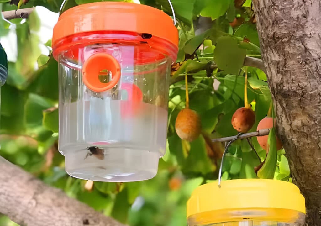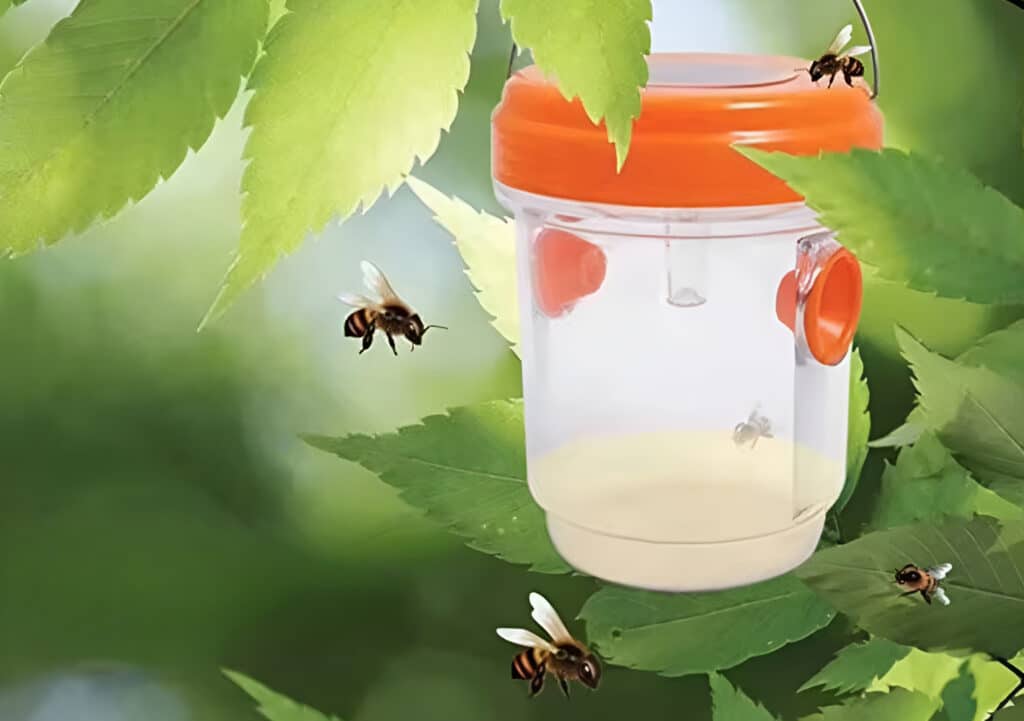 Sweetened water, fruit juice, soda, or beer work excellently. The sugar content attracts wasps and hornets while the liquid traps them. Avoid honey as it may attract beneficial bees you want to protect.