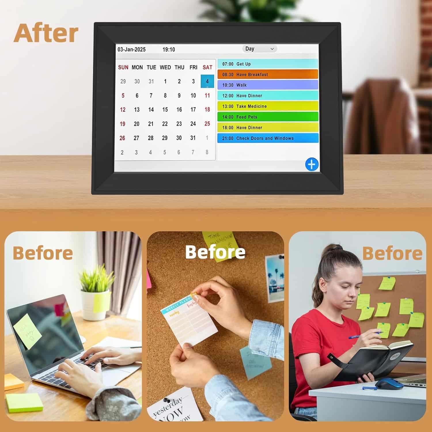 Calenvex is incredibly simple to set up. Just plug it in, select your language and time zone, and start using the touchscreen interface. No complicated manuals or technical expertise required—most users complete setup in under five minutes.
