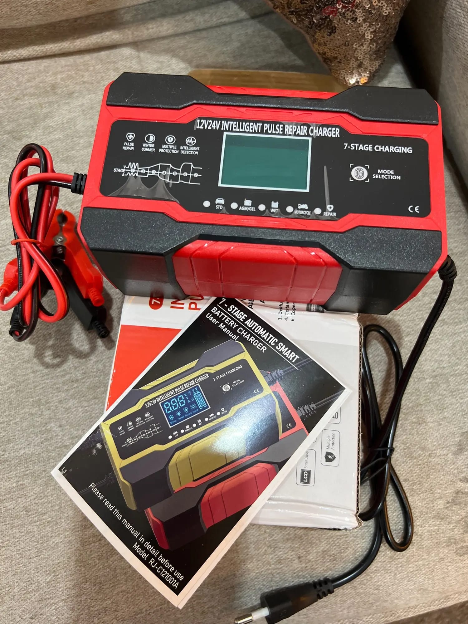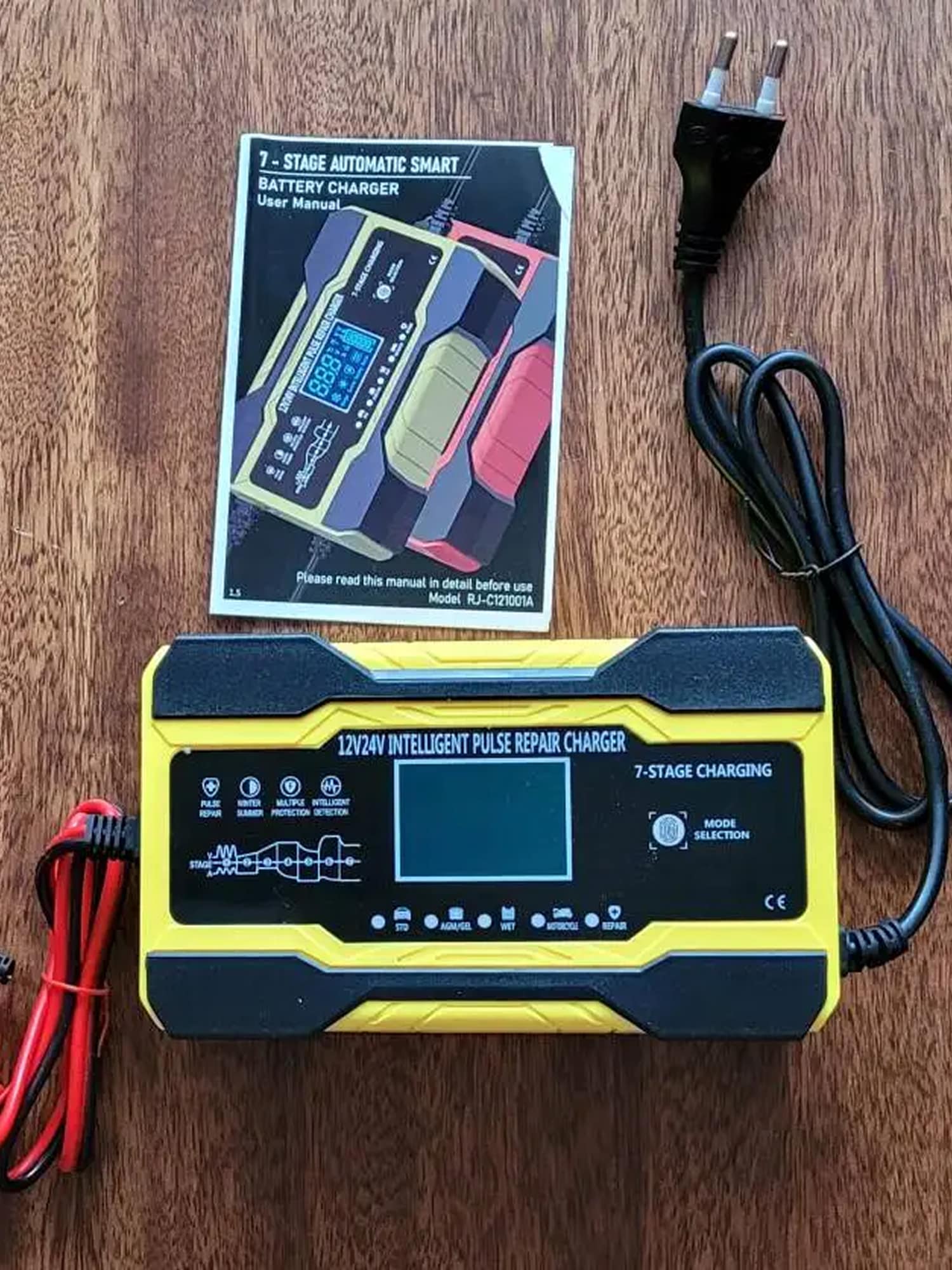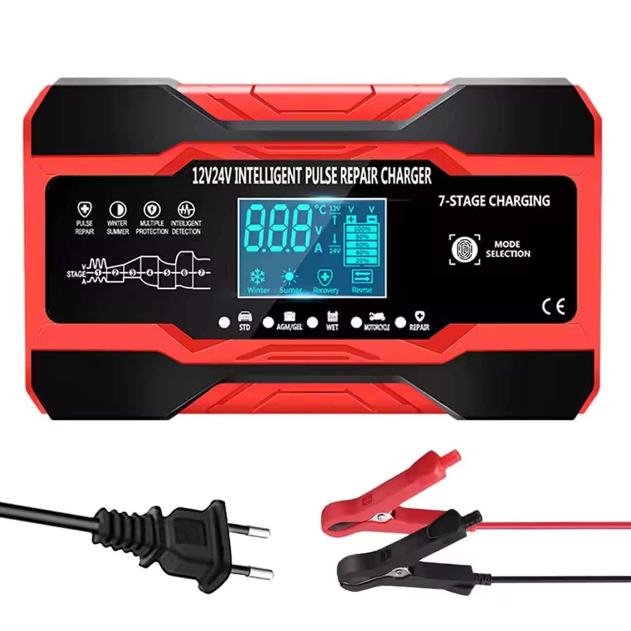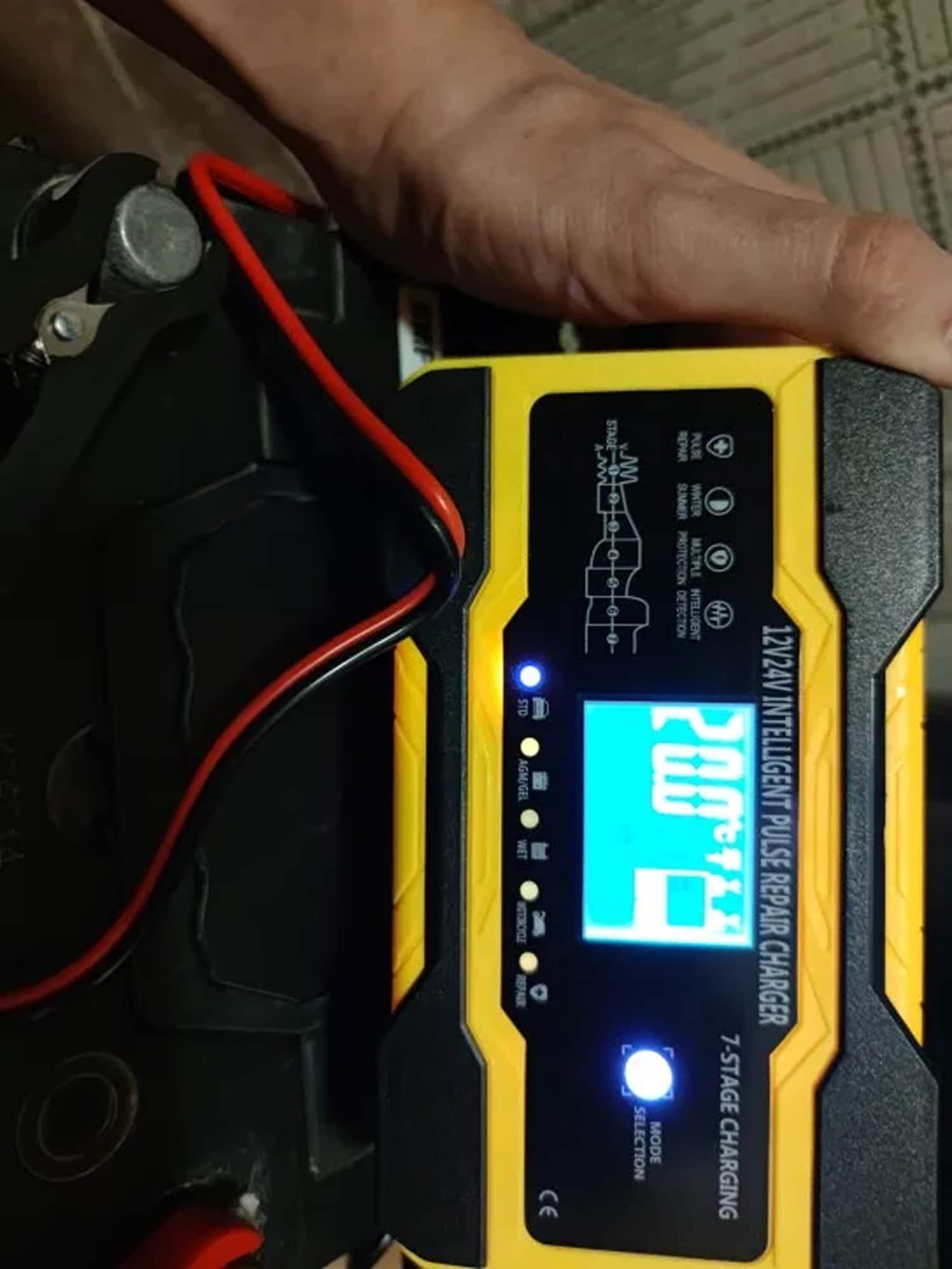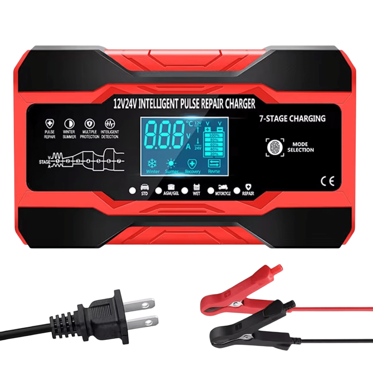 Reverse polarity protection immediately alerts you with LCD warning and prevents damage to battery or charger.