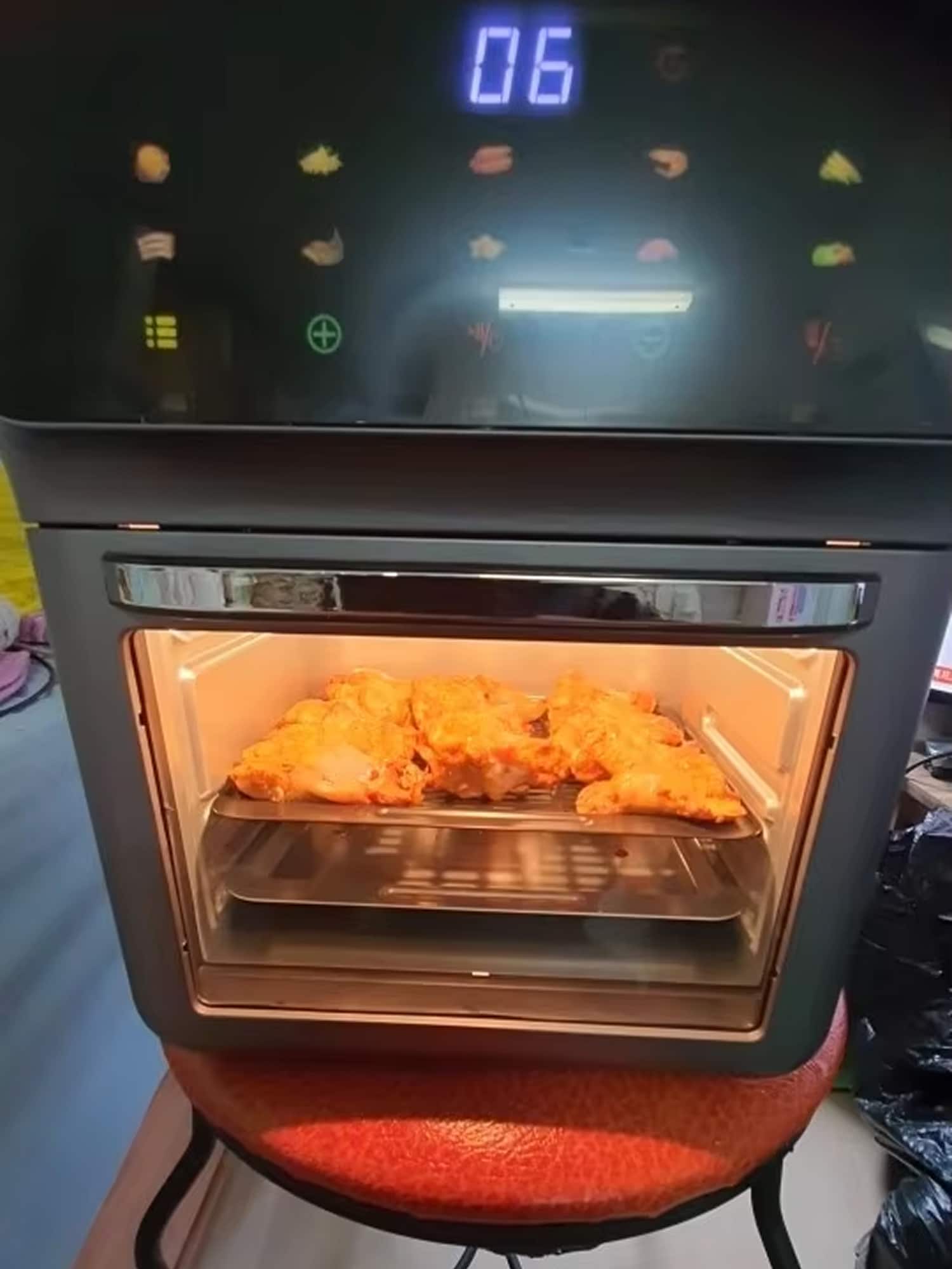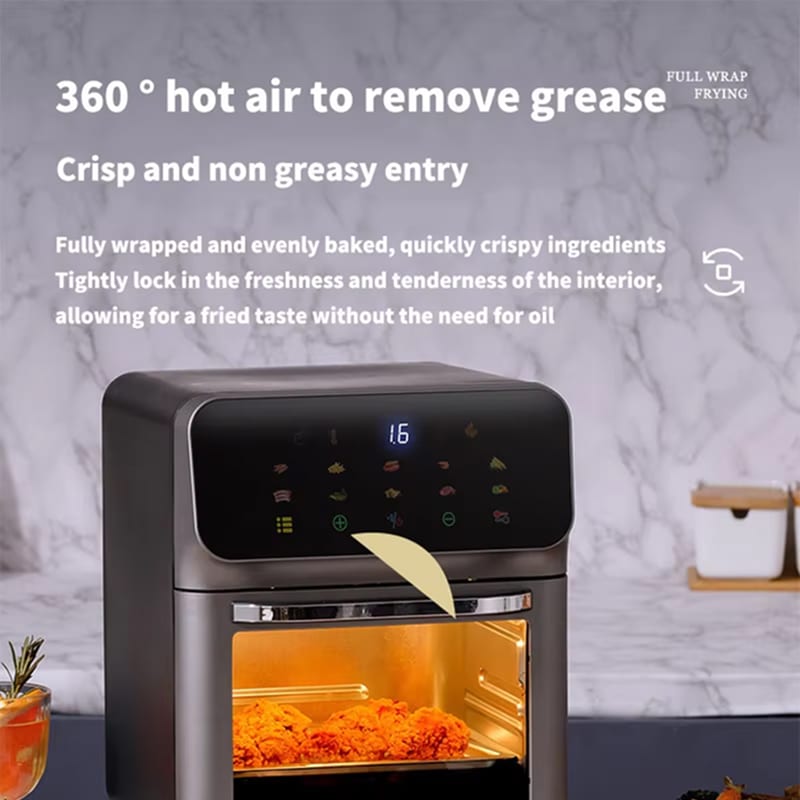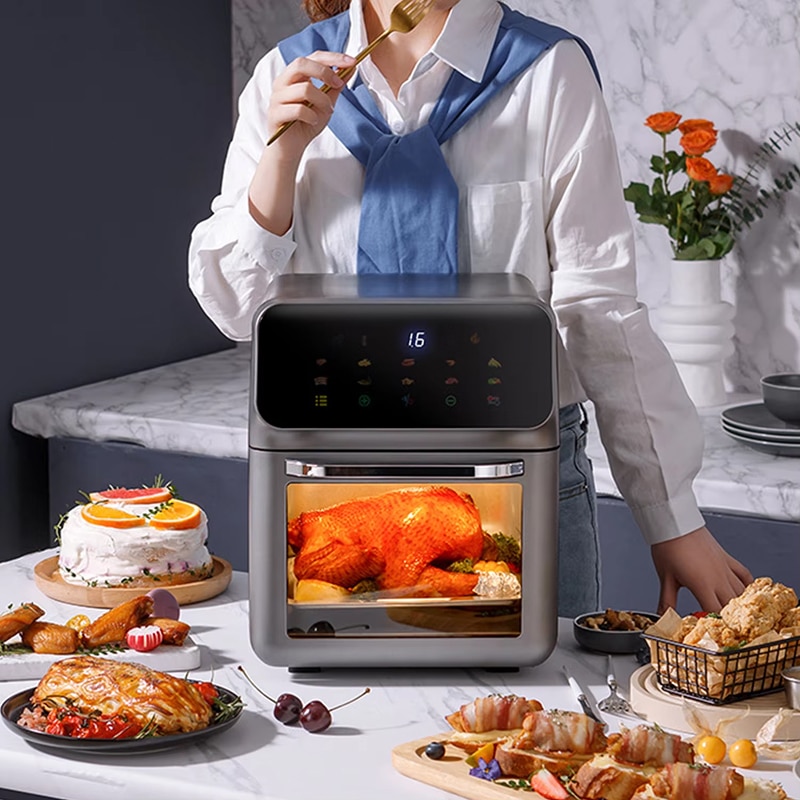 The 10-liter capacity is ideal for families of 4-6 people. It accommodates large portions, whole chickens, or multiple servings, making it perfect for family meals and gatherings.