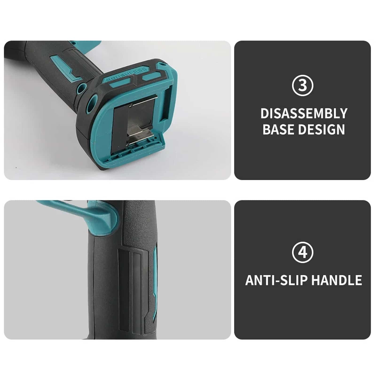 The ergonomic handle design accommodates both right and left-handed users comfortably with secure grip control.