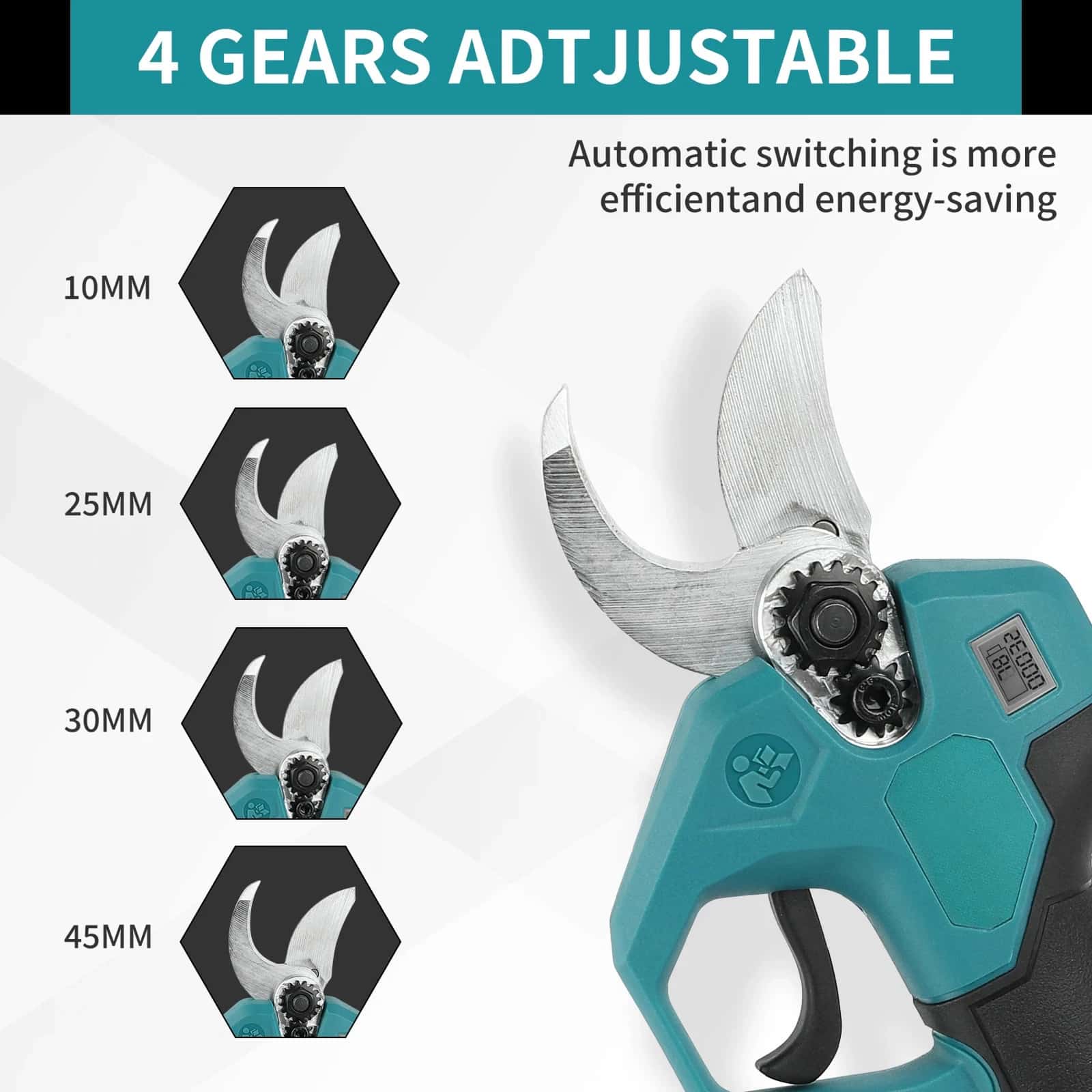 Simply use the gear selector to choose from four speed settings, adjusting based on branch type and desired cutting speed.