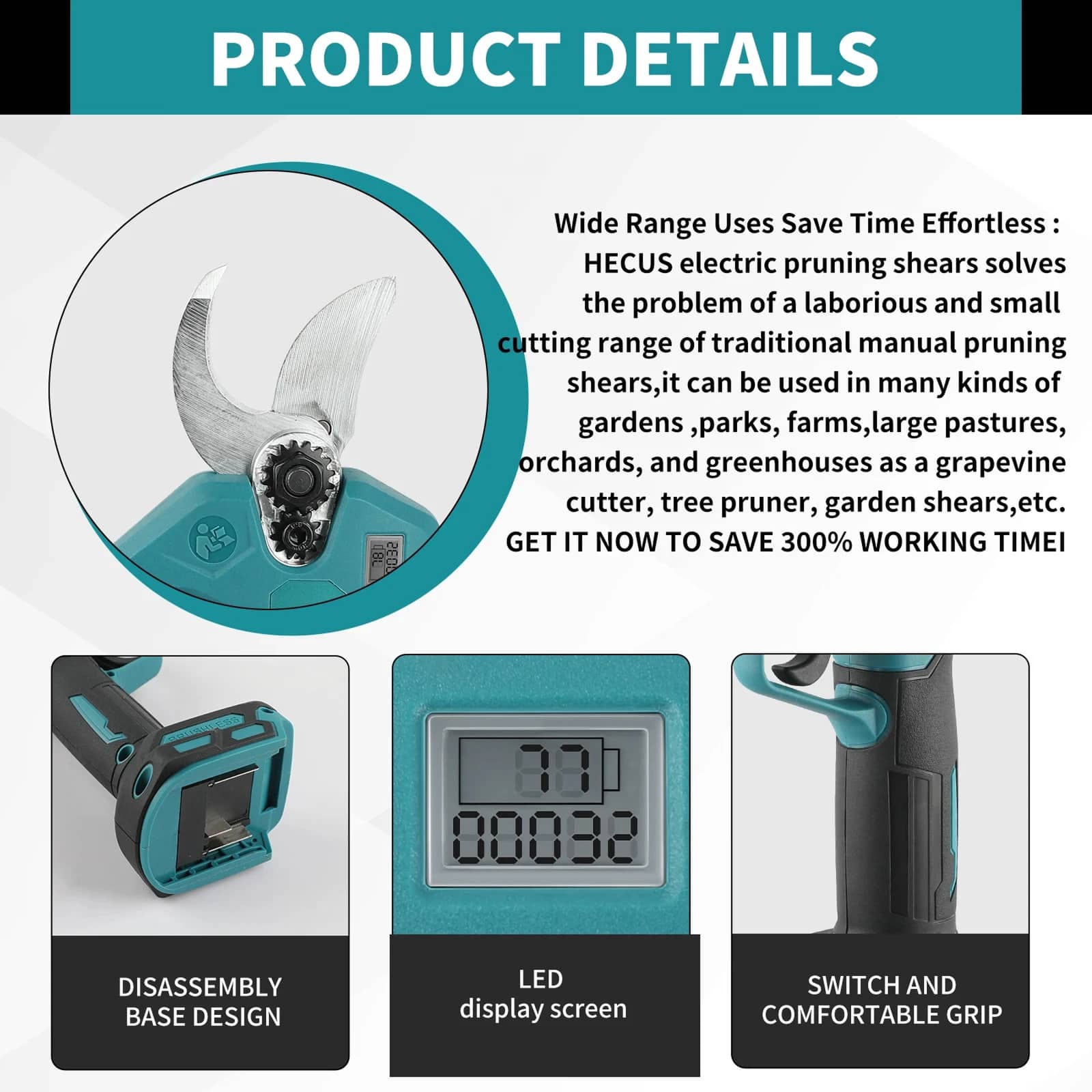 Battery life varies by usage, but typically provides 2-4 hours of continuous cutting depending on branch thickness and cutting frequency.