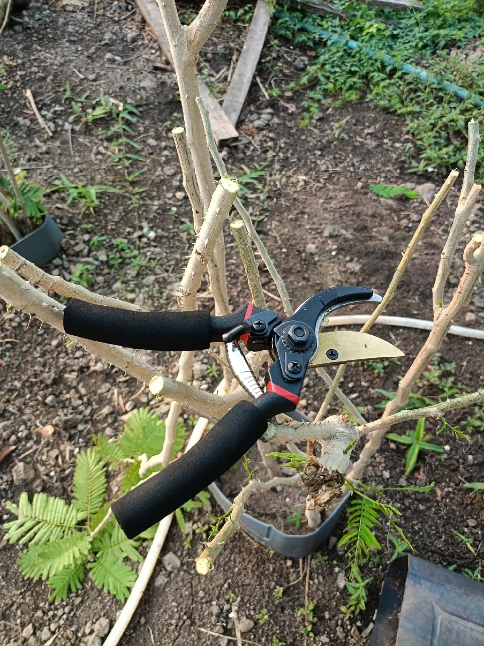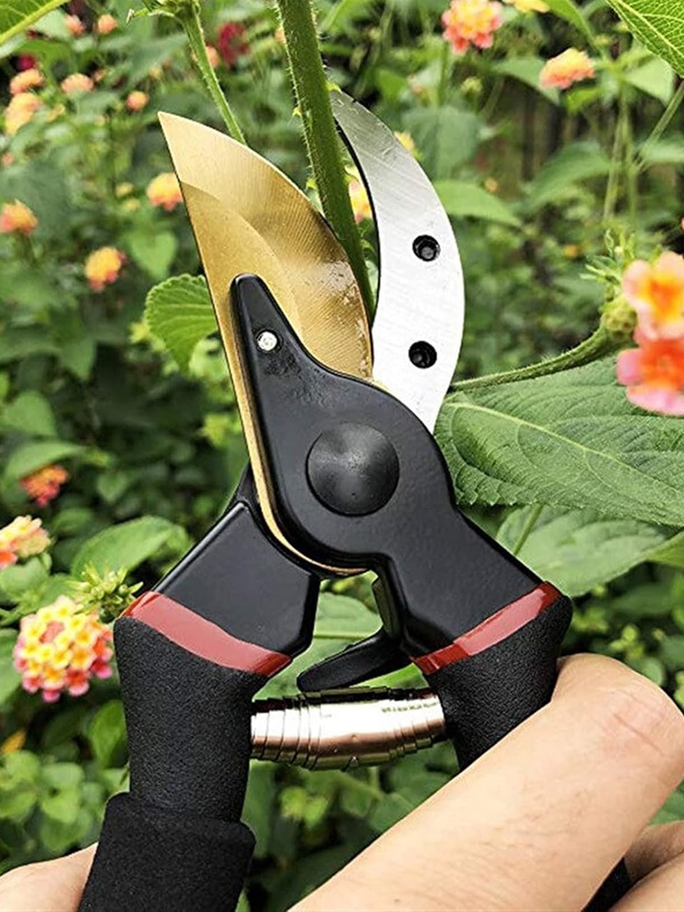 CuttyTri works excellently on roses, shrubs, small branches, and most garden plants requiring precise pruning and maintenance cuts.