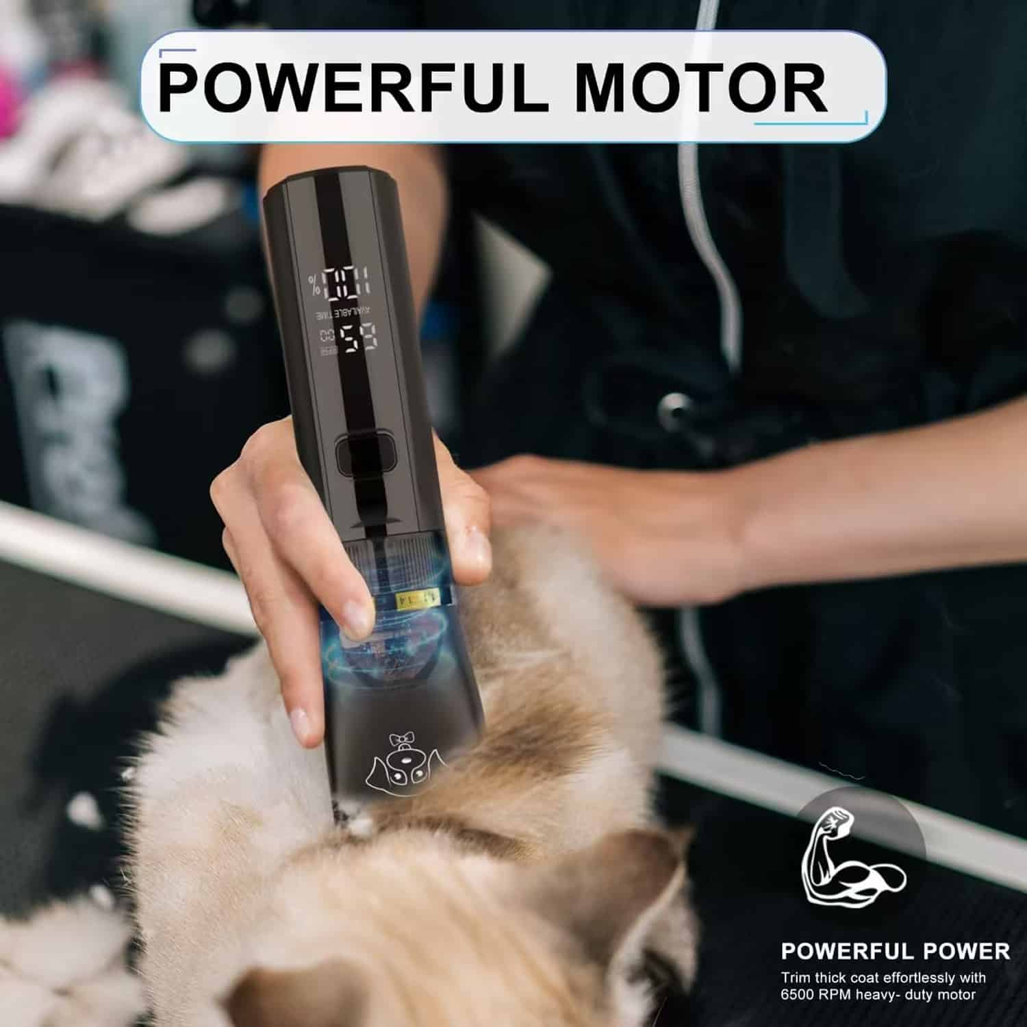 Yes, the Eanmoda v2 features a high-performance 6500 RPM motor that easily handles thick and matted fur. The precision ceramic titanium blades cut through challenging coats smoothly without pulling or causing discomfort to your pet.