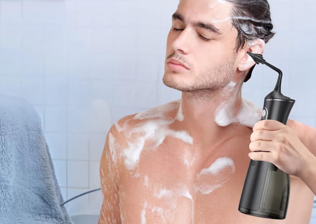 Some residual water is normal. Gently tilt your head to drain excess water, or use the included collection basin.