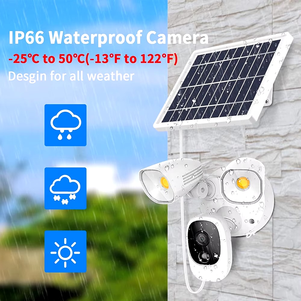 When the HolitCam's motion sensor is triggered at night, its powerful 1000LM LED floodlights automatically turn on. This illuminates the area, allowing the camera to capture full-color, high-definition video instead of standard black and white footage.