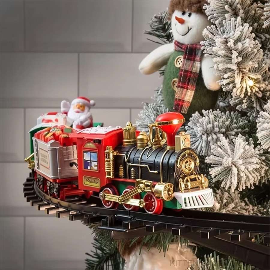 Experience genuine Christmas nostalgia with a classic Santa Claus train that circles your tree while playing festive music, creating an enchanting atmosphere that captures the timeless spirit of the holiday season perfectly.