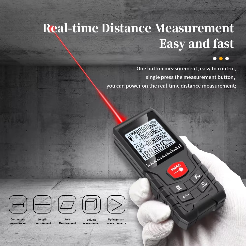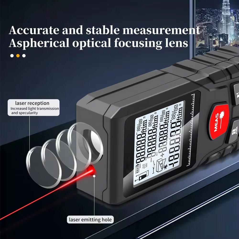 MearayNix measures distances up to 131 feet (40 meters) with consistent accuracy. This range covers most residential and commercial applications, from small rooms to large outdoor spaces effectively.