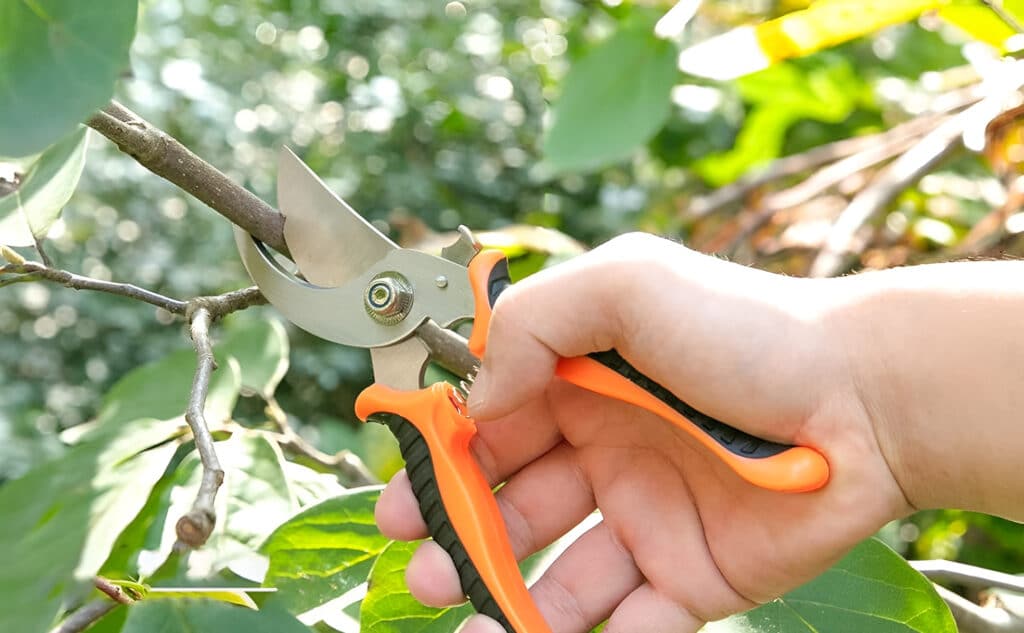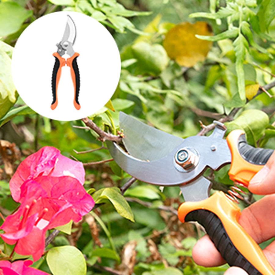 The pruning shears feature precisely sharpened stainless steel blades that cut branches up to half-inch diameter cleanly. They maintain sharp edges through regular use for consistent cutting performance.