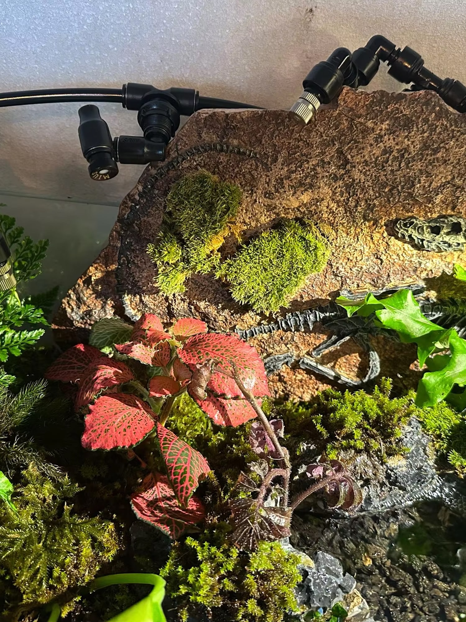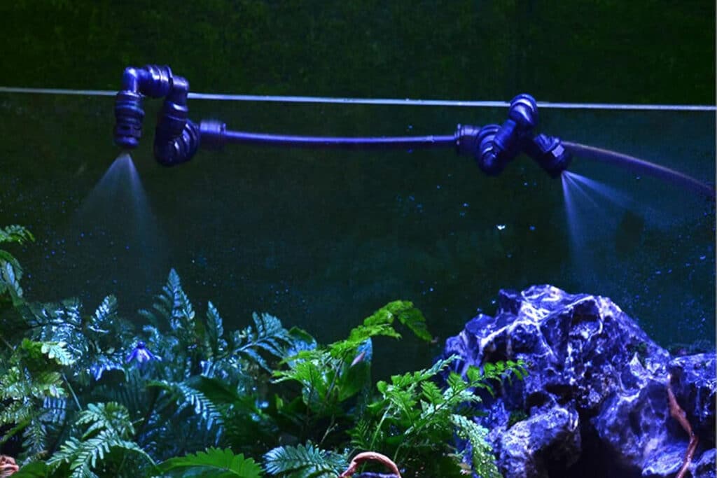 PlantyRix works excellently in glass terrariums, screen enclosures, plastic habitats, and wooden vivariums of various sizes. The flexible tubing and adjustable nozzle adapt to different enclosure types, ensuring proper mist distribution regardless of your specific habitat design and dimensions.