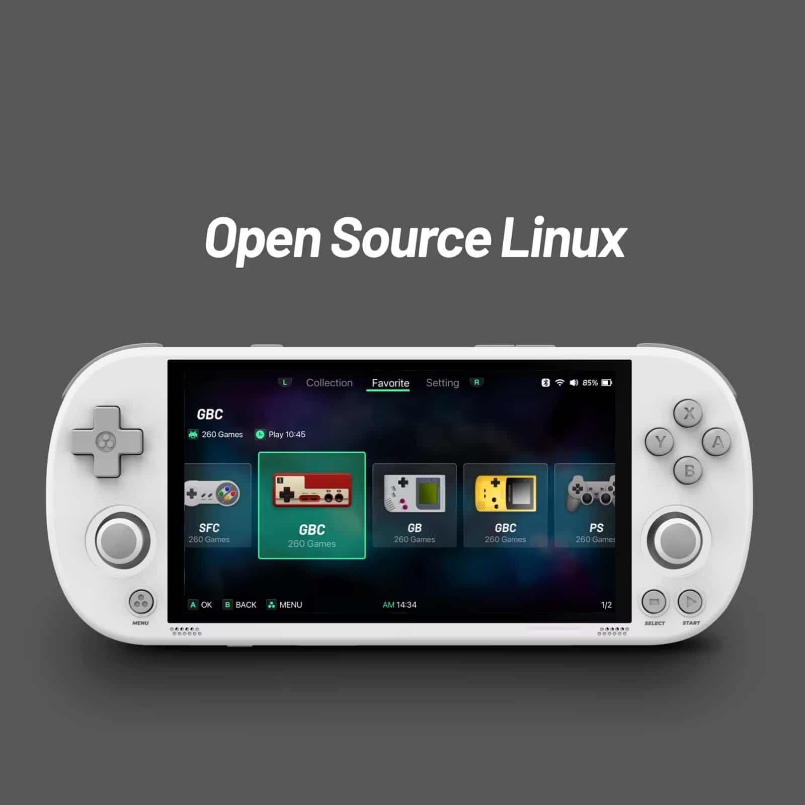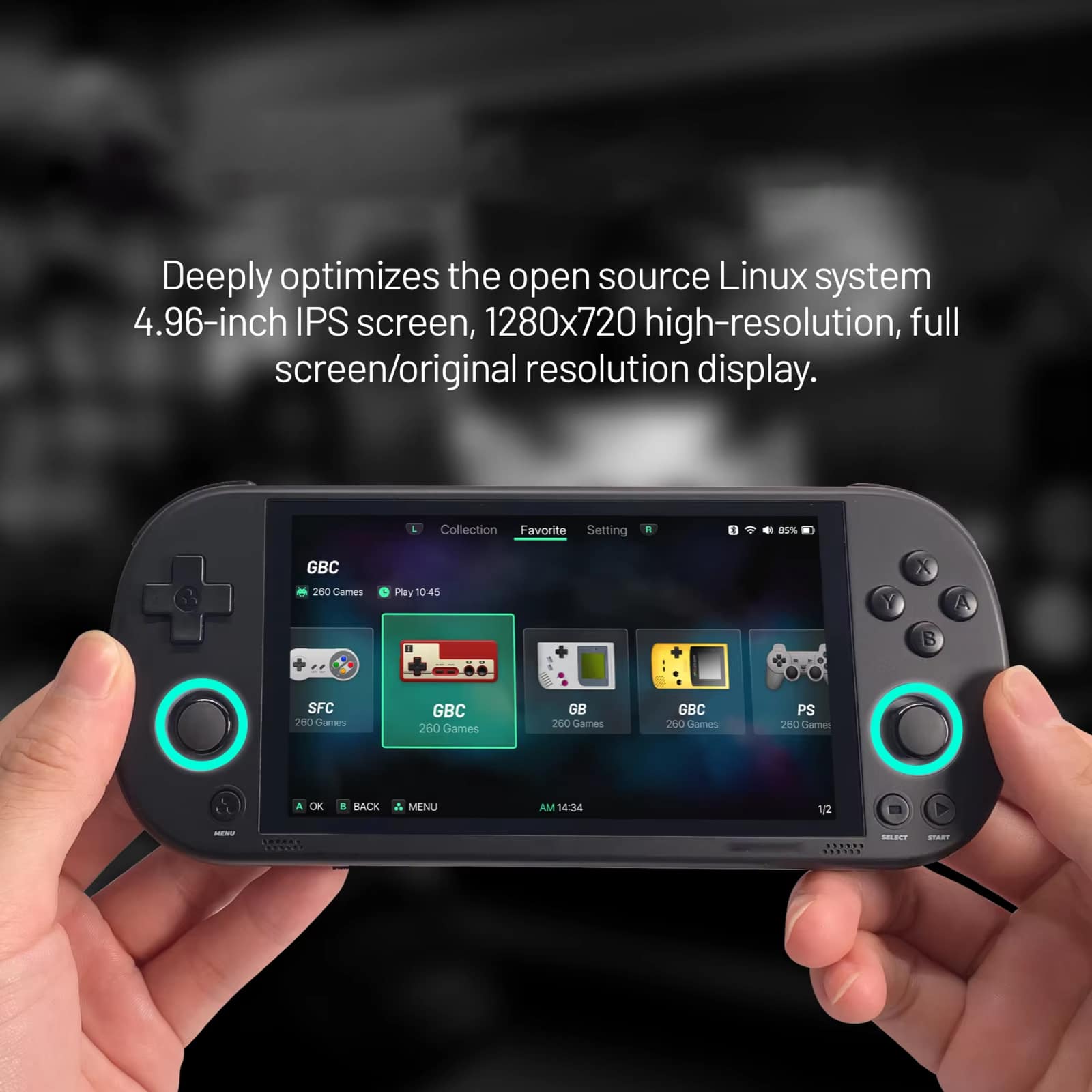 The 5000mAh battery provides over 5 hours of continuous gameplay on a single charge, with Type-C charging for quick and convenient power-ups.