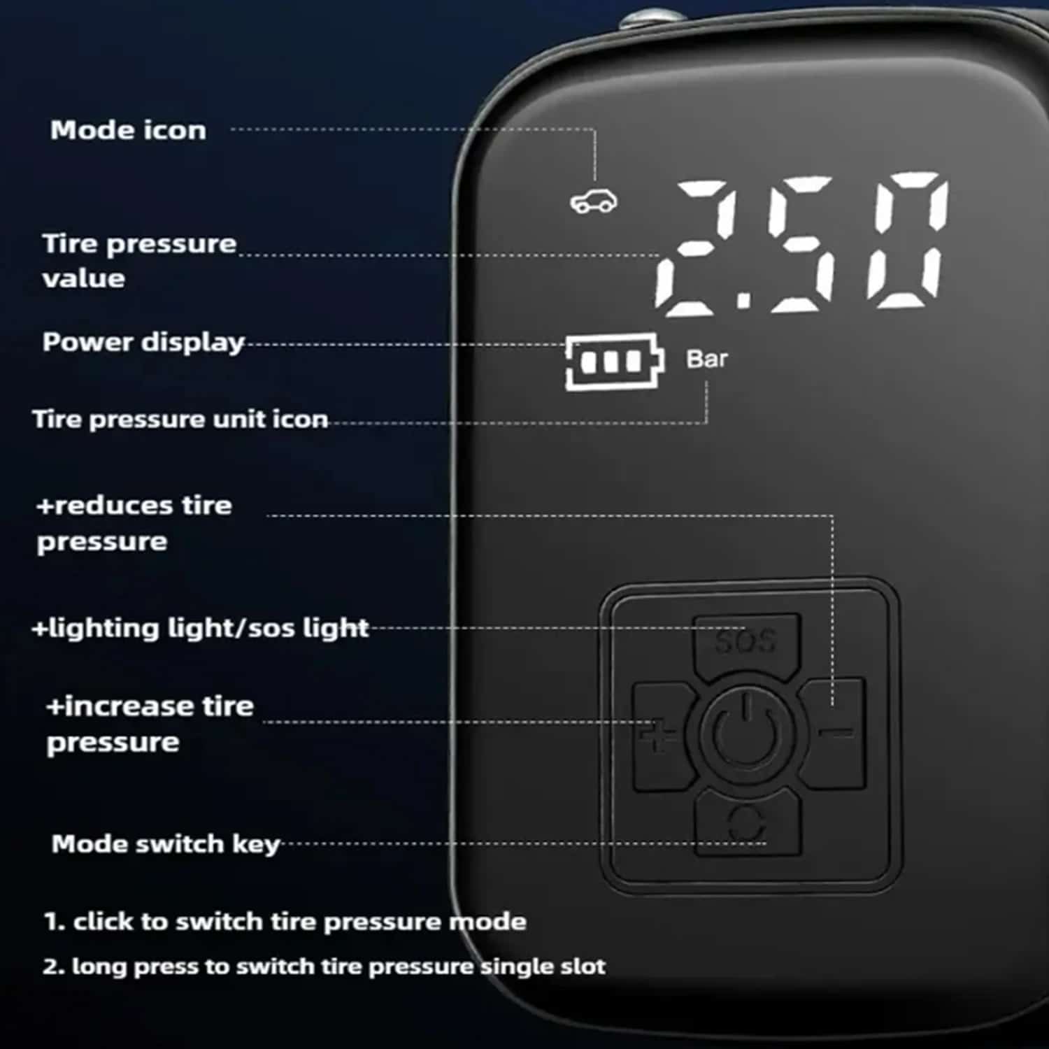 The digital pressure sensor provides readings accurate to ±0.1 PSI, which exceeds the precision of most portable compressors and matches many professional shop models.