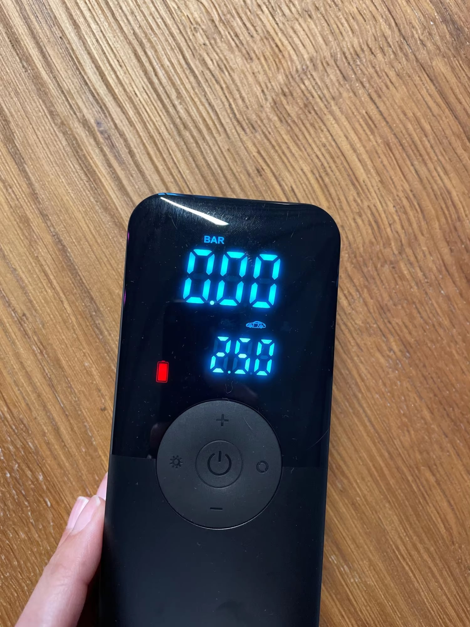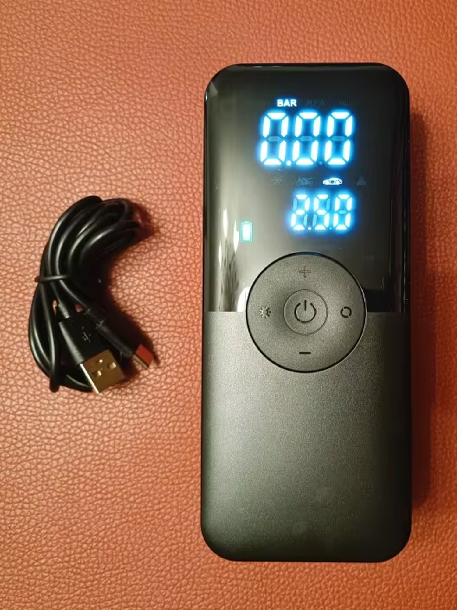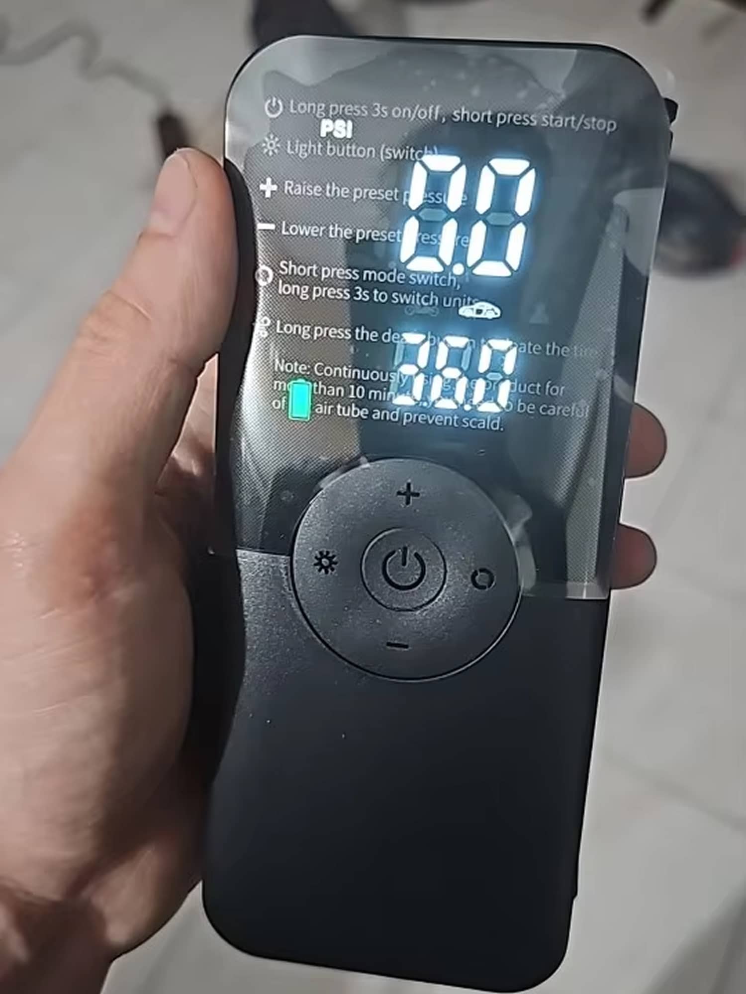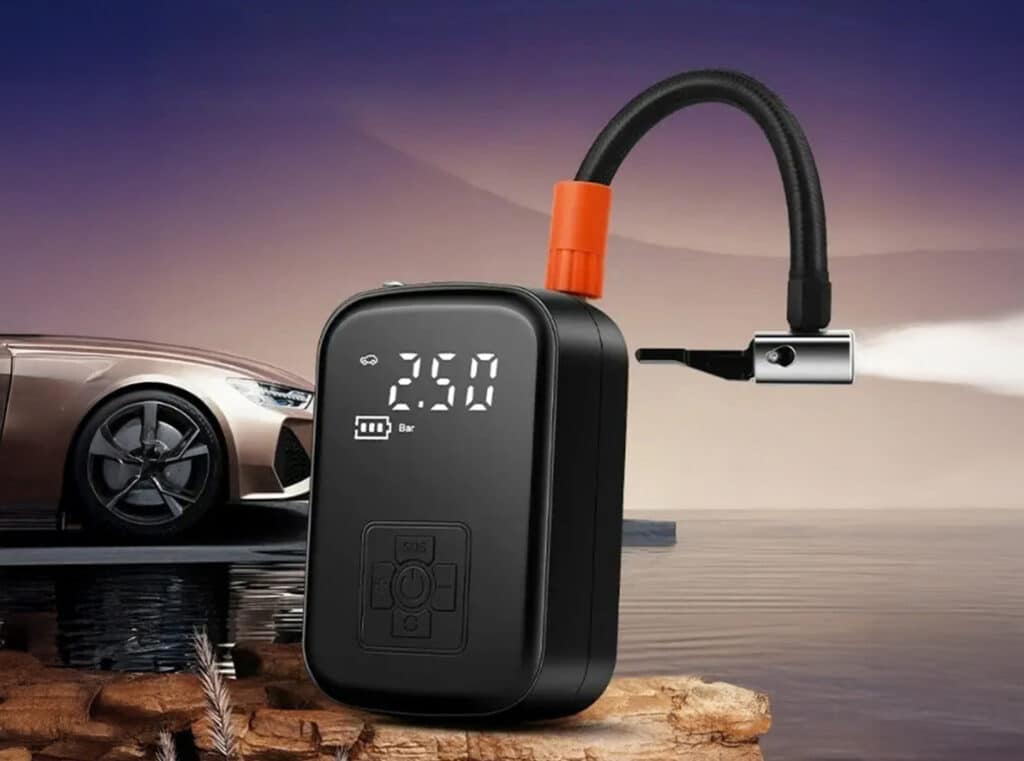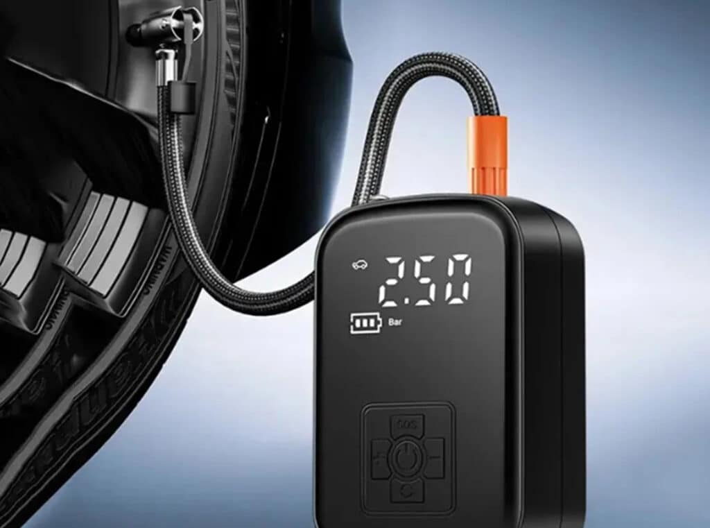 The digital pressure sensor provides readings accurate to ±0.1 PSI, which exceeds the precision of most portable compressors and matches many professional shop models.