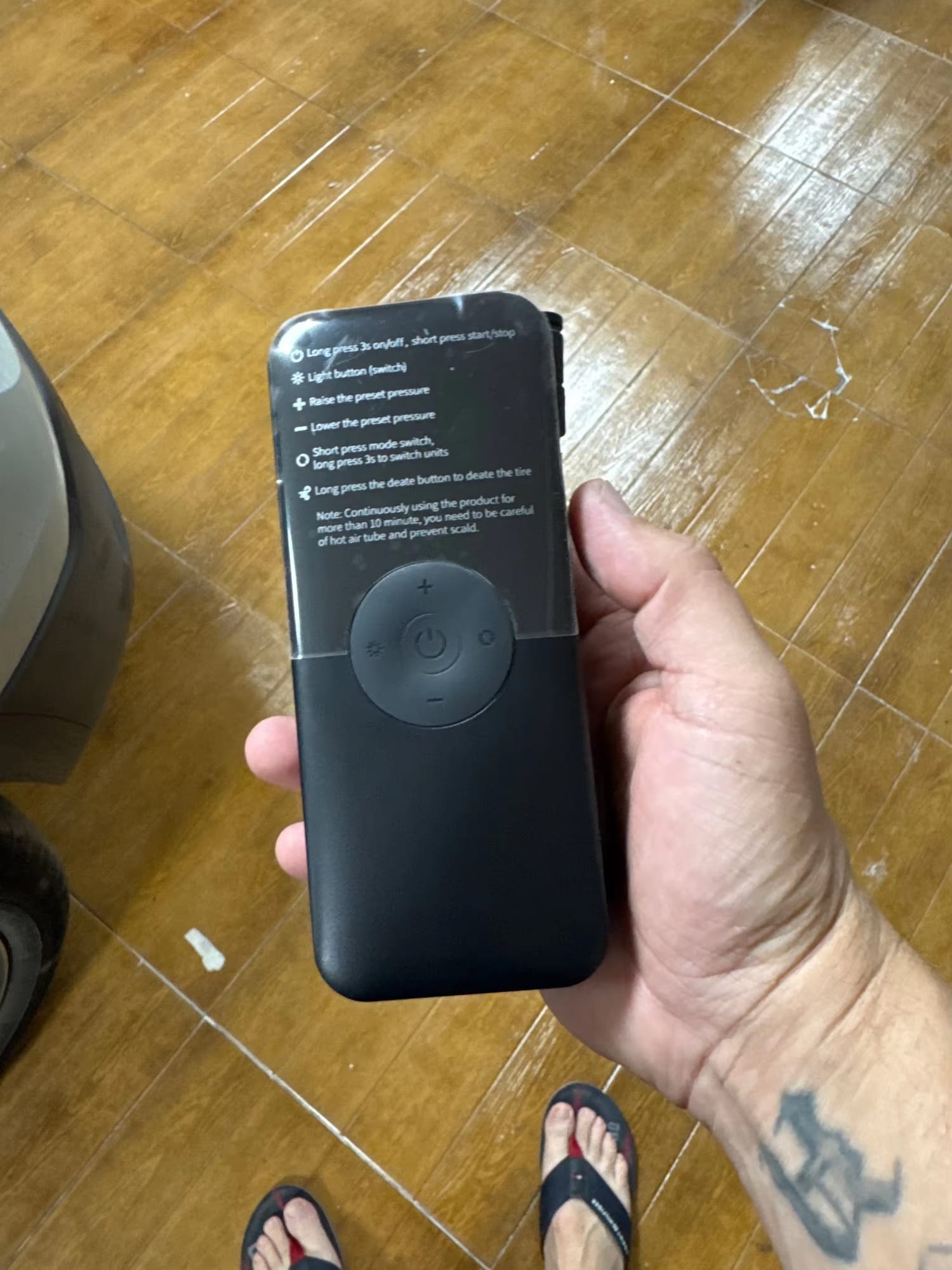For safety reasons, the inflation function is disabled during charging, but the LED light and power bank features remain operational while connected to power.