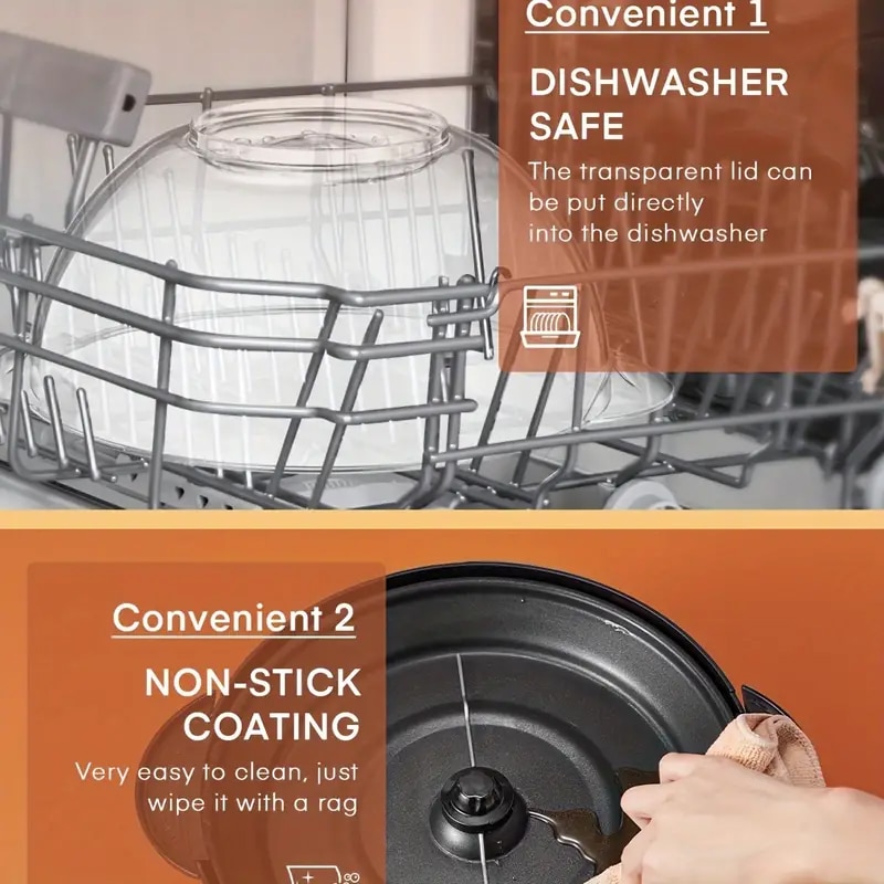 Simply remove the dishwasher-safe components and load them into your dishwasher, or hand-wash with warm soapy water. The non-stick coating prevents stubborn buildup, making cleanup quick and hassle-free every time.