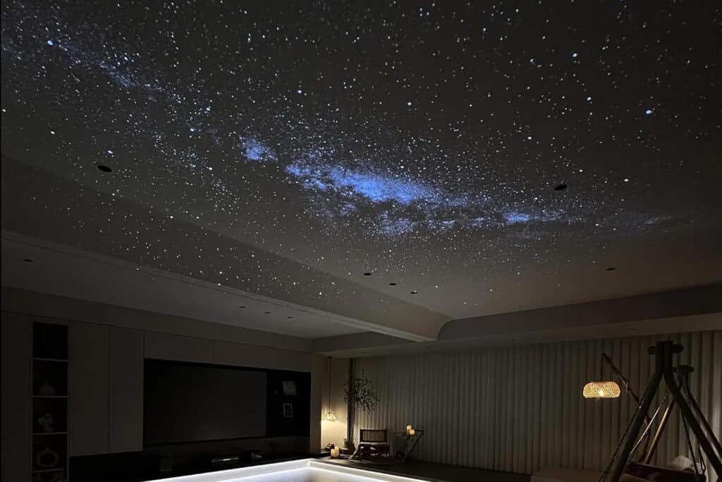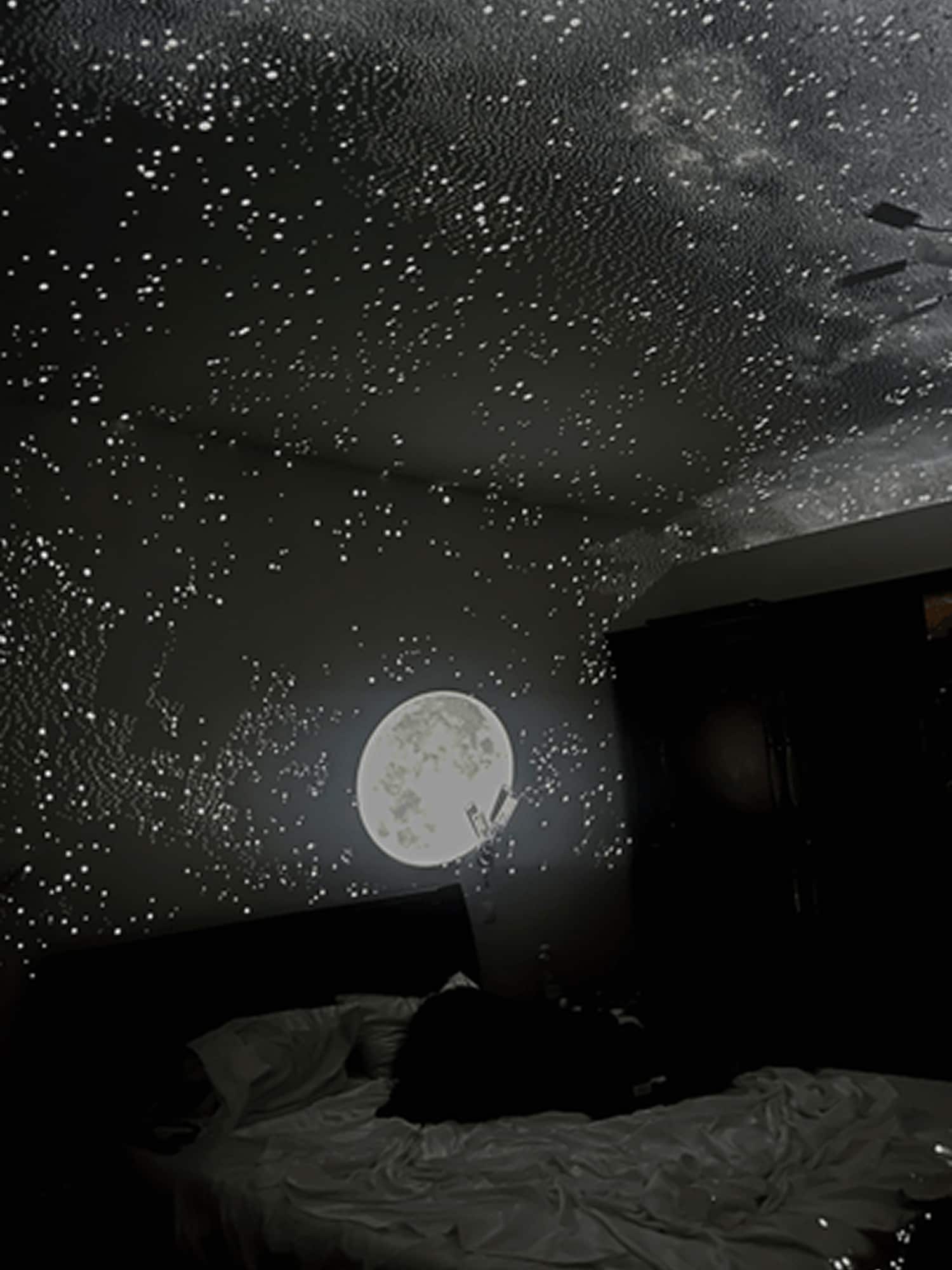 The StelyAstra effectively projects across ceilings and walls up to 400 square feet, covering most standard bedrooms completely. For optimal clarity, position it 6-10 feet from projection surfaces.