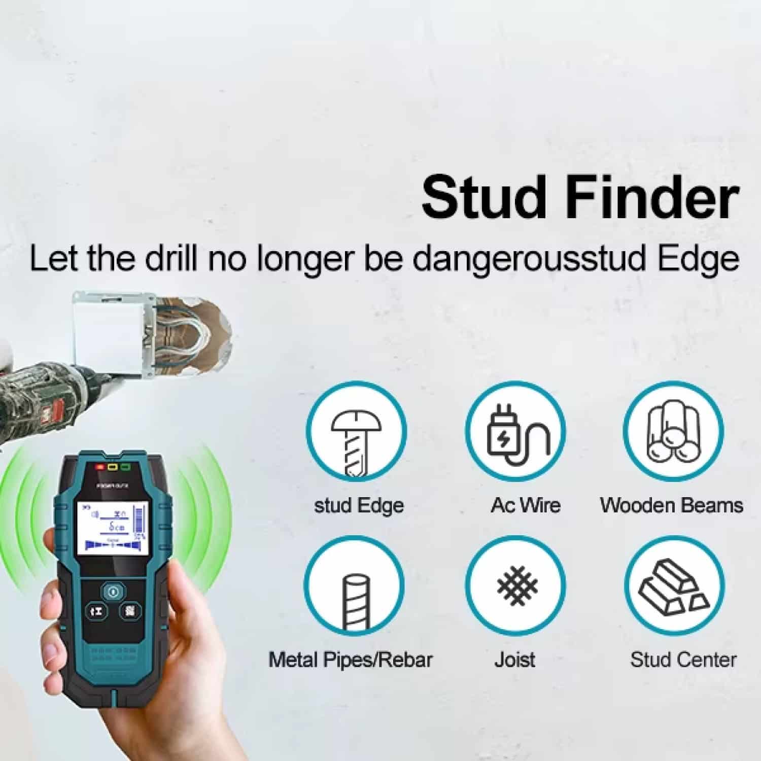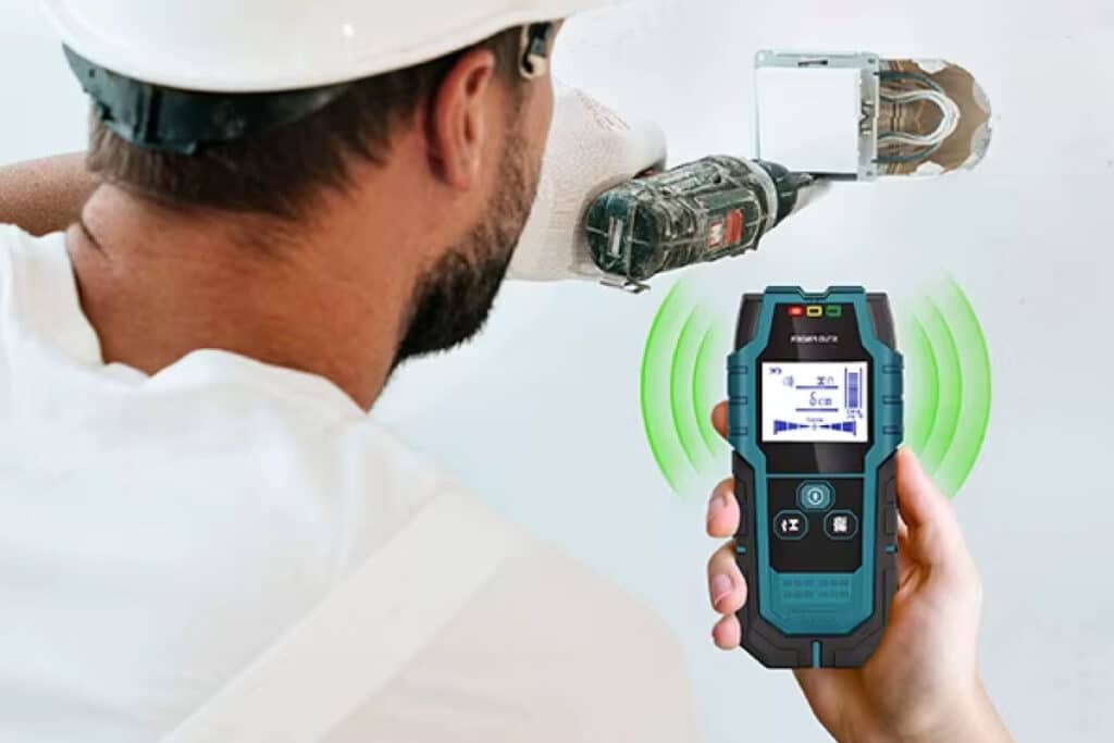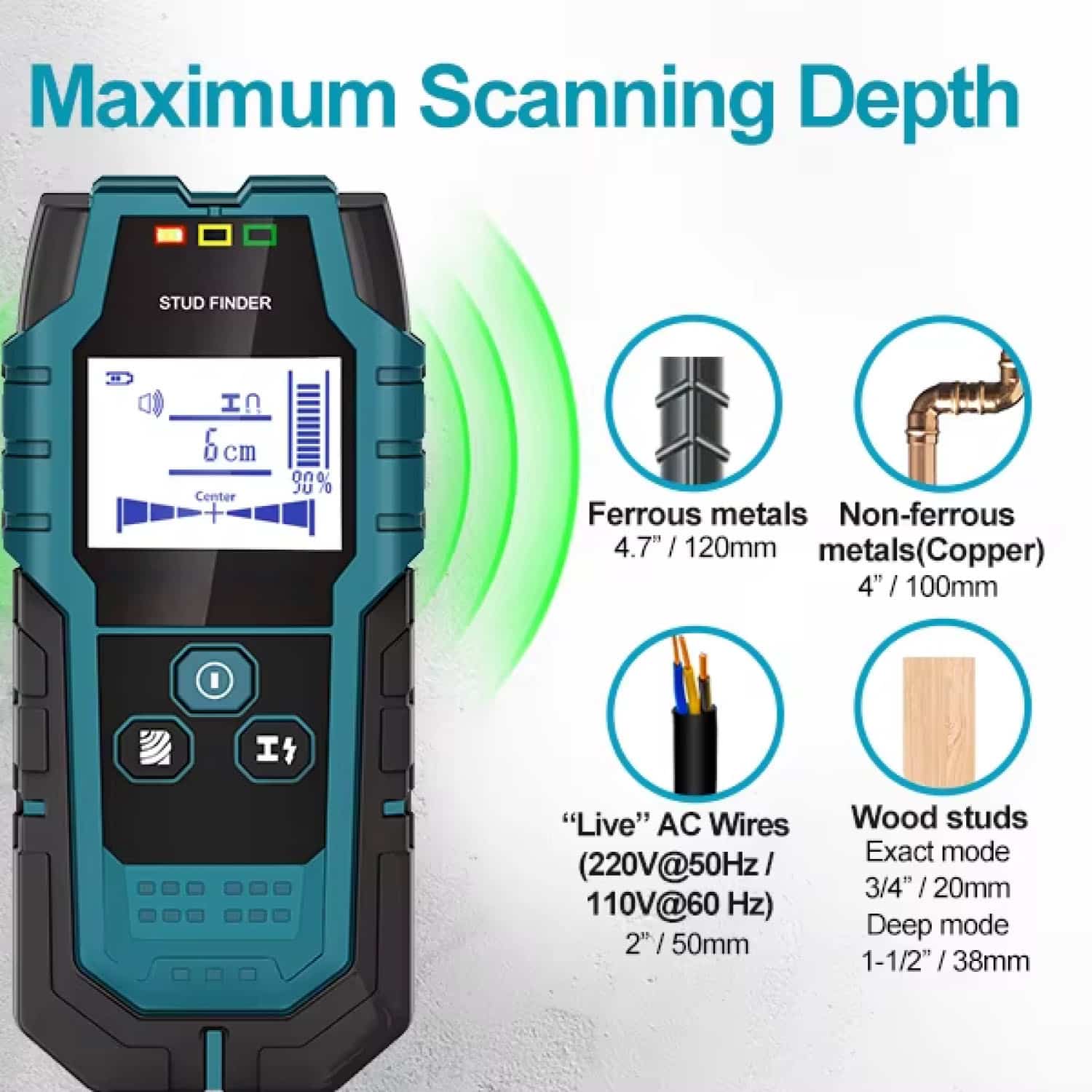 TochyPox detects objects up to 4.7 inches deep for ferrous metals and 1.5 inches for wood studs, providing thorough scanning capability for most residential and commercial wall thicknesses.
