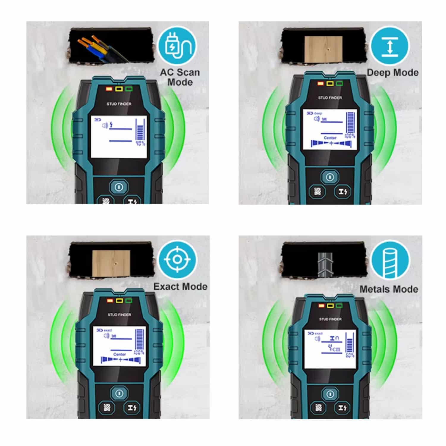 Simply select from four modes—Exact for studs, Deep for maximum depth, Metals for pipes, or AC Scan for wires—and TochyPox automatically optimizes detection for your specific scanning needs.