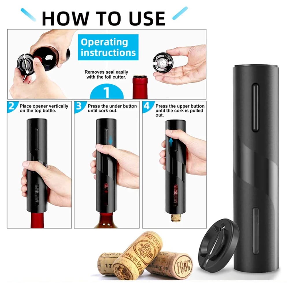 The built-in blue LED indicator displays battery status, alerting you when power is running low so you can recharge before your next wine opening session.