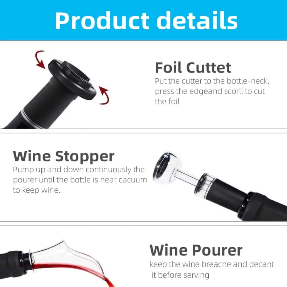 Yes, the included foil cutter efficiently removes foil seals, plastic caps, and wax seals from most wine bottles, providing a complete opening solution in one package.